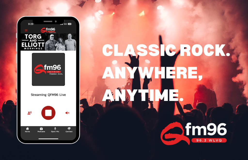 Download the free Qfm96 app and get all of your favorite classic rock tunes anywhere, anytime! This app is loaded with features like “Open Mic” where you can send an audio message to your favorite radio hosts like Torg & Elliot and Kristie Kemper! Be sure to connect with Qfm96 on all social platforms and sign up for push notifications so you can take advantage of exclusive app-only contests. You never know when we might be sending out our next BIG giveaway!