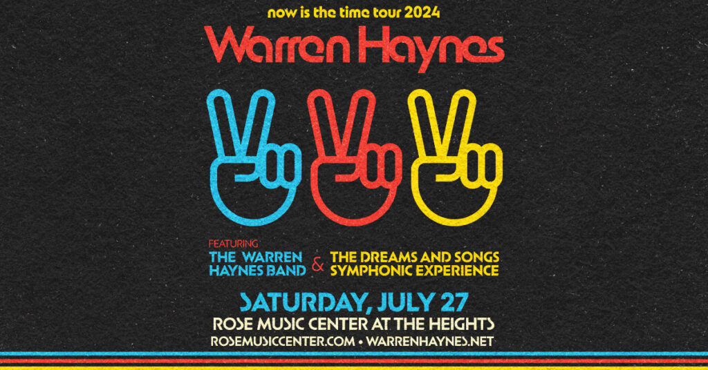 QFM96 “YOUR CONCERT STATION” WELCOMES THE WARREN HAYNES BAND AND THE DREAMS AND SONGS SYMPHONIC EXPERIENCE – NOW IS THE TIME TOUR TO ROSE MUSIC CENTER AT THE HEIGHTS ON SATURDAY, JULY 27TH! TICKETS ARE ON-SALE NOW AT TICKETMASTER.COM AND ROSEMUSICCENTER.COM BUT OUR VERY OWN DAVEMAN WANTS TO SEND YOU TO THE SHOW FOR FREE!