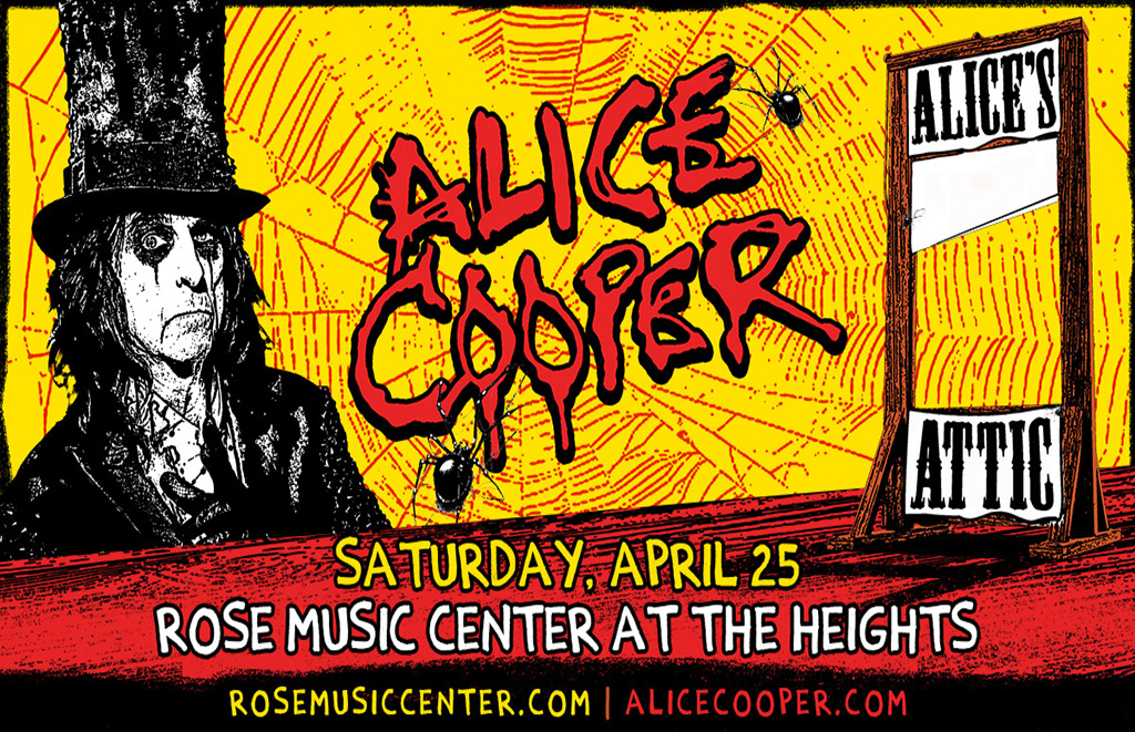HUBER HEIGHTS, OH (1/26/2026) – Rock ‘N’ Roll Hall of Fame and music icon ALICE COOPER has been bringing his thrilling theatrics to audiences of all ages for decades, drawing equally from horror movies, vaudeville, and garage rock. He will return to stages this spring on his headline “Alice’s Attic” tour, which includes a return to Huber Heights, OH for a performance at Rose Music Center at the Heights on Saturday, April 25.