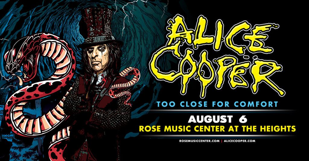 HUBER HEIGHTS, OH (4/15/2024) – Get ready for a night of shock and rock that will haunt your dreams. Legendary rocker Alice Cooper has announced additional dates for the Too Close For Comfort Tour, including a highly anticipated return to Rose Music Center at The Heights on Tuesday, August 6.