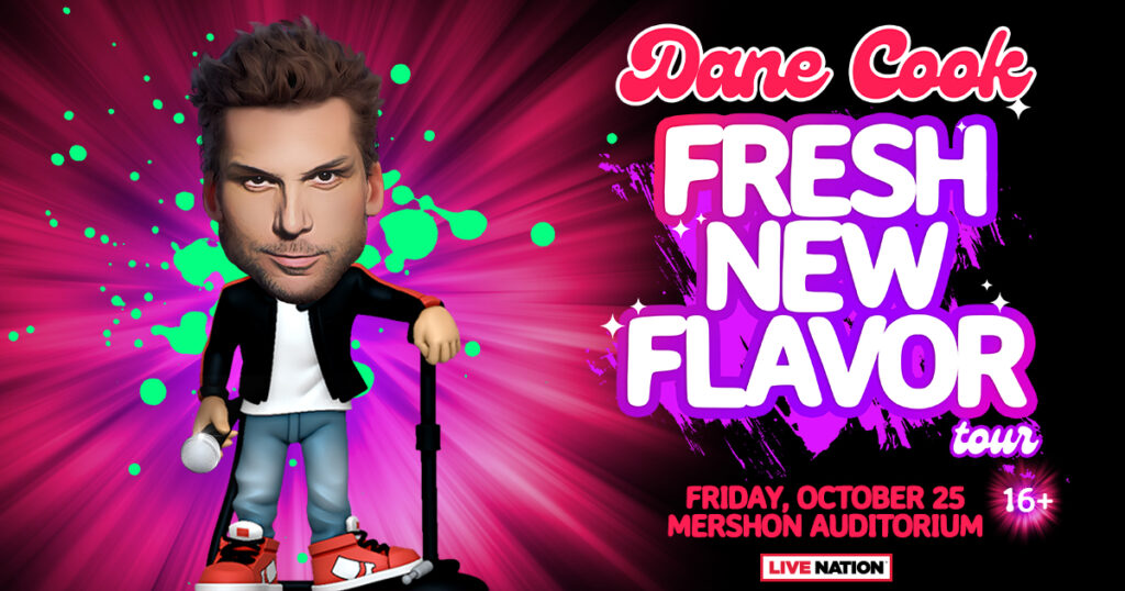 Dane Cook comes to Mershon Auditorium with his FRESH NEW FLAVOR TOUR Friday, October 25th! Get tickets now at Ticketmaster.com!
