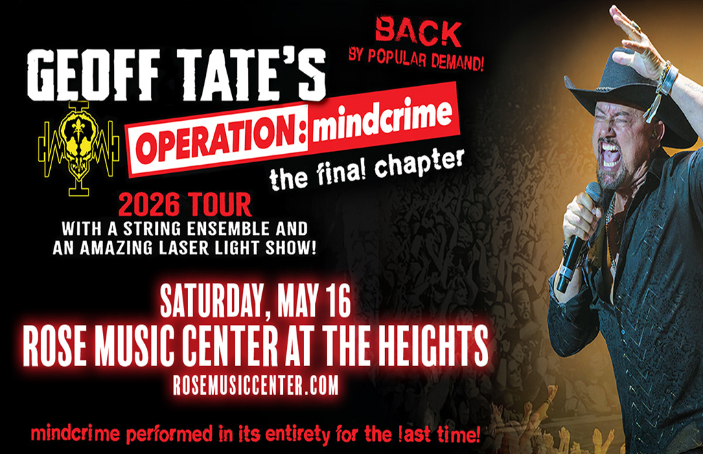 HUBER HEIGHTS, OH (12/16/2025) – multi-platinum selling, Grammy nominated singer/songwriter Geoff Tate announced today additional dates for the 2026 U.S. leg of his “Operation: Mindcrime – The Final Chapter” Tour. Get ready for a legendary night as Operation: Mindcrime is performed from beginning to end in its entirety for the last time at Rose Music Center at The Heights on Saturday, May 16, 2026.