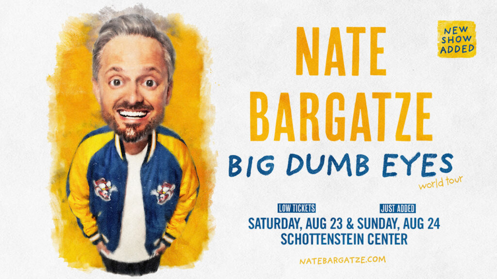 Comedian Nate Bargatze brings his Big Dumb Eyes World Tour to the Schottenstein Center on Saturday, August 23rd and Sunday, August 24th.