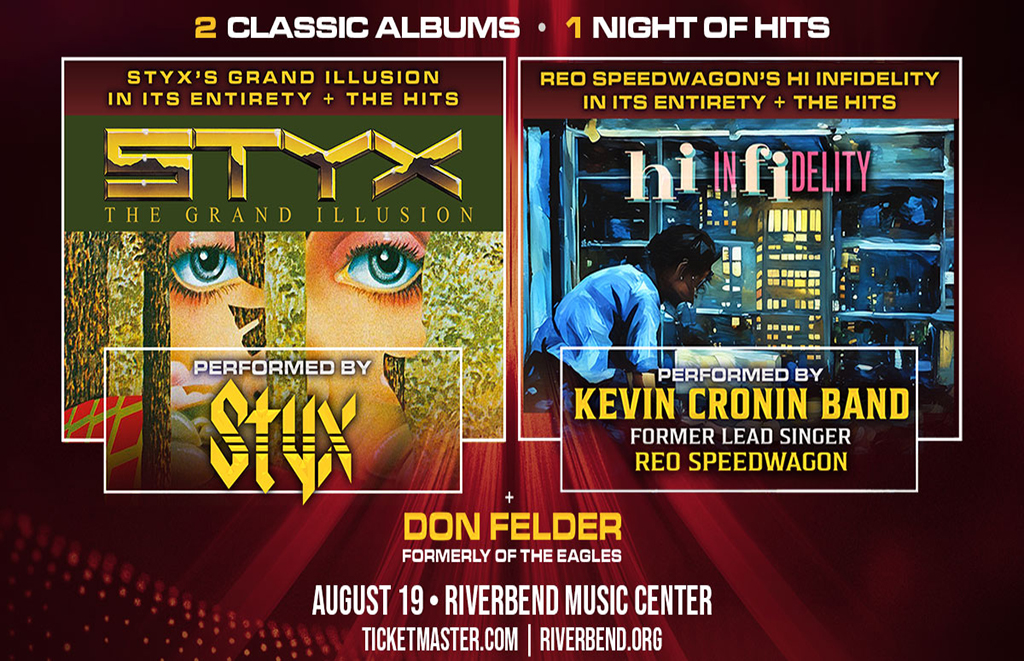 As Styx declares, “When people fall in love with a great album, they fall in love with it for life. To play that album in a LIVE concert stirs a unique set of emotions in each member of the audience and it’s really a joy to experience! Styx saw that firsthand back in 2010 when we first played THE GRAND ILLUSION in its entirety, playing those songs in the exact sequence they appear on record. Now in 2025, after performing THE GRAND ILLUSION for five sold-out nights in Las Vegas, we are excited to bring this show to our summer tour. In addition, our touring mates, Kevin Cronin and the music of REO Speedwagon will feature a full performance of their mega successful HI INFIDELITY album and Don Felder will be performing the song he co-wrote, ‘Hotel California’ and other hits from his career. It’s going to be quite a celebration!”