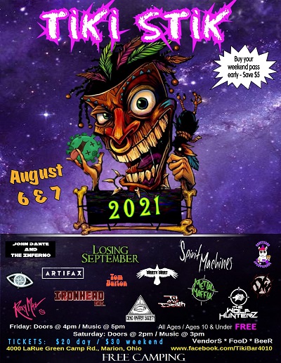 The TiKi Bar is proud to announce the return of TiKi STiK – our annual two-day music festival. AUGUST 6 & 7 — 2 days / 15 bands
