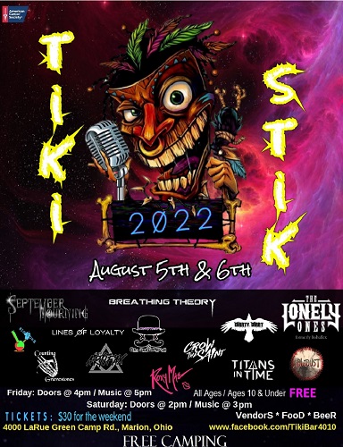 The TiKi Bar and TK Booking present TiKi STiK 2022 –> August 5 & 6 – 2 days/14 bands