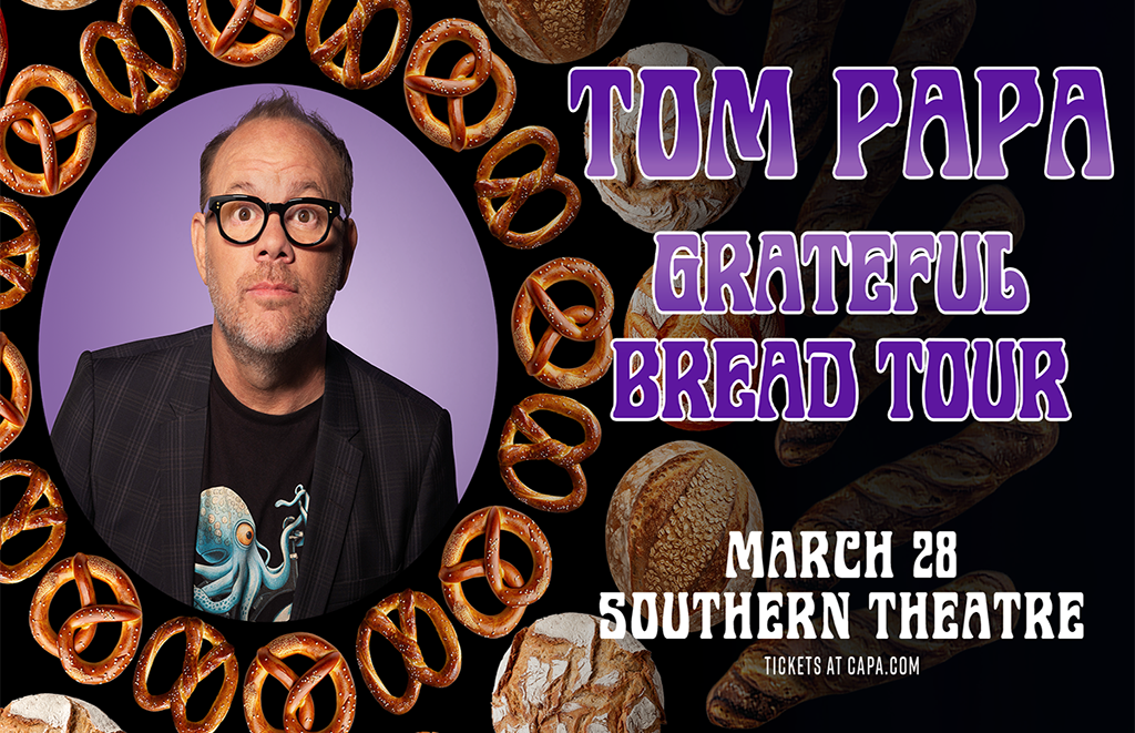 CAPA welcomes comedian Tom Papa, on his 2026 GRATEFUL BREAD TOUR, to the Southern Theatre stage for a March 28, 2026, show at 7 pm.