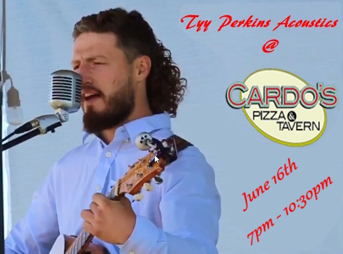 Make plans this Friday June 16th from 7pm – 10:30pm, to come listen to some of your favorite covers from the 60’s to present, rock to country, performed by Tyy Perkins Acoustics @ Cardo’s Pizza & Tavern.